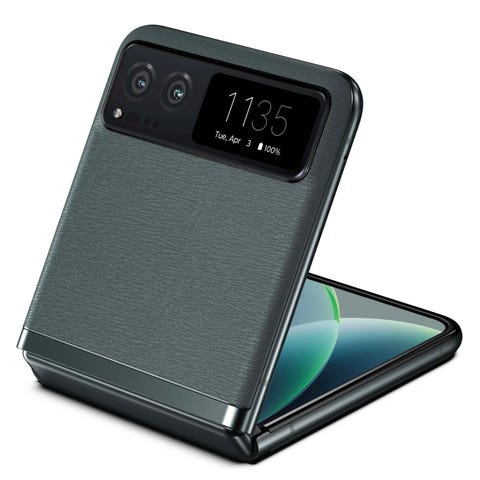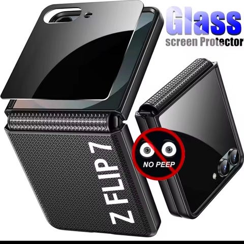Samsung telefondeksel i grå farge med kortholder på baksiden. Dekselet er tilpasset Z Flip 7 Samsung-telefon med utsparing for skjerm og kamera. Materialet fremstår som imitert skinn med strukturert overflate. Kortholderen har plass til kort på utsiden av dekselet. Egnet for daglig bruk for å beskytte telefonen mot riper og mindre støt samtidig som kort kan oppbevares sammen med telefonen.