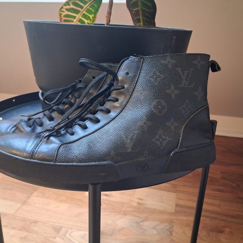 Kjøpt på LV butikken i Oslo. Skinn-sneakers med klassisk monogram i brun. Lite brukt, i god stand.