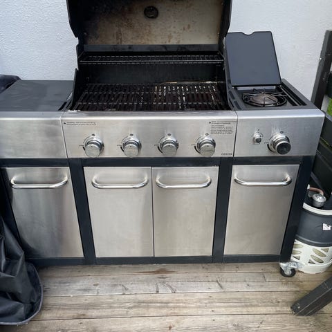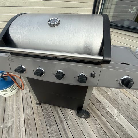 Godt brukt og bærer preg av vær og vind. Trenger også en grundig vask både innvendig og utvendig. Selges som den er, men har fungert fint til nå. Gass medfølger ikke.