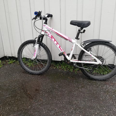 DBS terrengsykkel for barn med 24" hjul. Sykkelen har hvit ramme med DBS-logo, dempegaffel foran og grove dekk som egner seg for både grus og enklere terreng. Utstyrt med flat styre med gripevennlige holker, girbetjening på styret og felgbremser foran og bak. Sykkelen har også støtte og flaskeholder. Passer som juniorsykkel til barn som skal over fra mindre barnesykkel til større sykkel med 24" hjul.