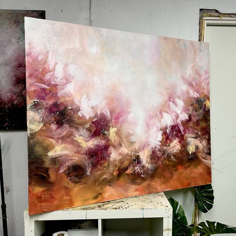 Akrylmaleri , landskap str.150x100 « Vårstemning» malt av Mona Berg Henriksen