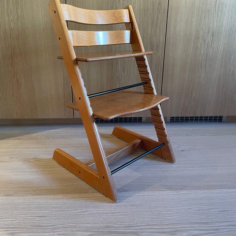 Stolen er godt brukt, men har fortsatt mange år med barneglede å gi.
