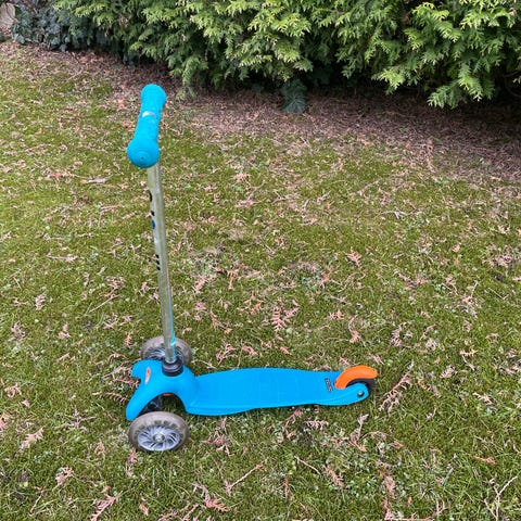 Blå trehhuls sparkesykkel til barn selges. Brukt, men i god stand.