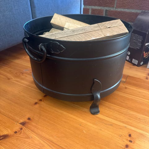 Peissett med vedoppbevaring / bøtte , metall