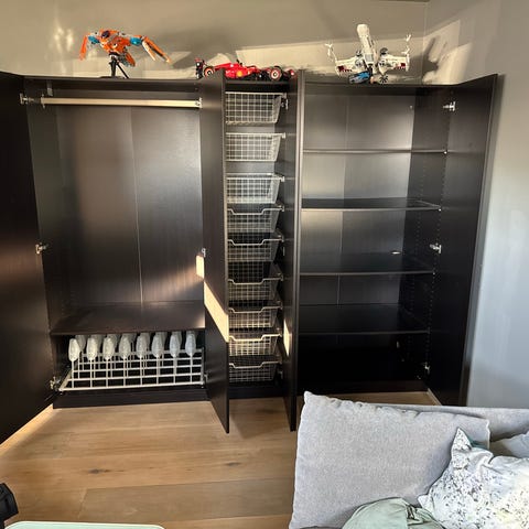Selges da det ikke skal brukes, er 2 speil skyvedører og 4 skuffer på hver side.