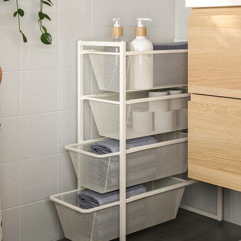 JONAXEL oppbevaringssystem gjør at du kan bruke plassen du har smartere. Sett sammen en kombinasjon som passer ditt behov og bruk den nesten overalt, selv i fuktige bad og vaskerom.
