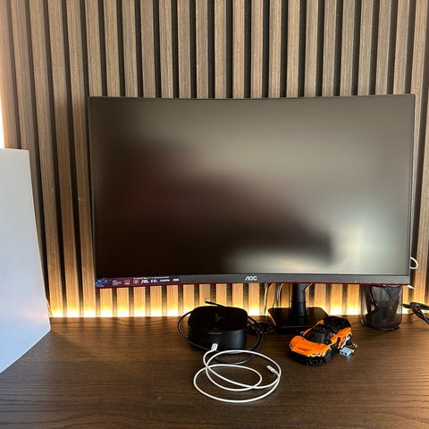 En praktisk talt ny 180Hz-skjerm. Selges fordi jeg flytter og ikke kan ta den med meg. Jeg kan selge den som et sett med datamaskinen. Originalesken er fortsatt på plass.