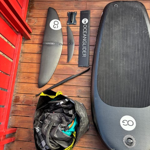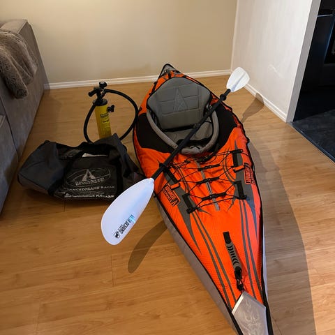 Surplus SUP-utstyr sett med seil, sete, åre og pumpe