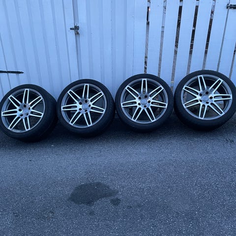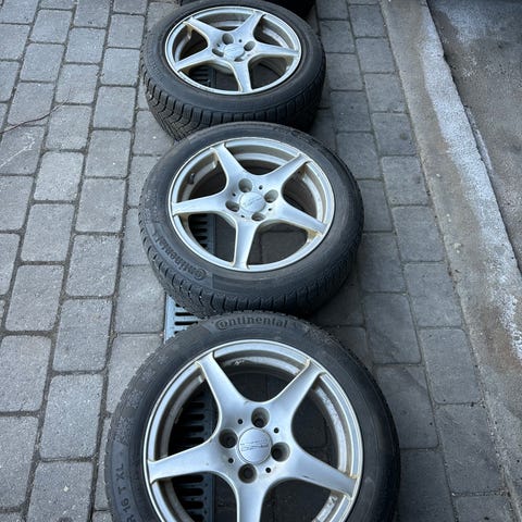 Felgene er ikke pene, se bilder. Stygg klarlakk og en liten skade i den ene felgen. Selges derfor rimelig.