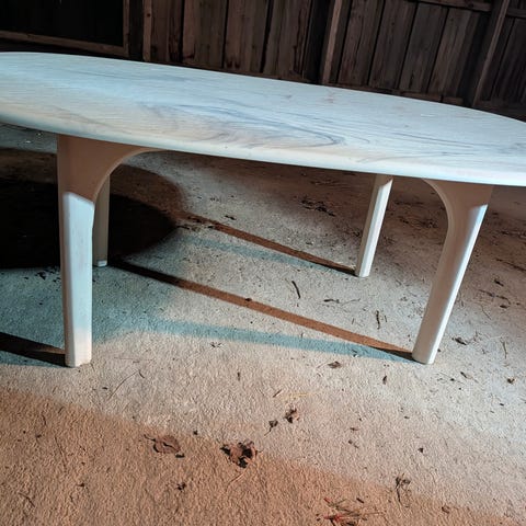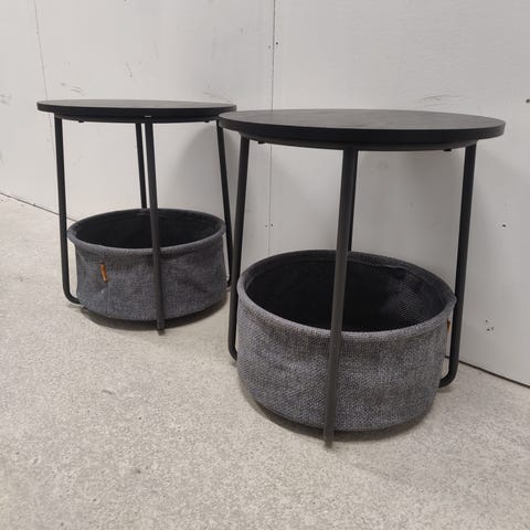 To sofabord i marmor, kjøpt på bohus for noen år siden. Det minste bordet har fått en sprekk i steinplaten. De har også merker etter å ha blitt sølt drikke på, som jeg ikke får vekk.