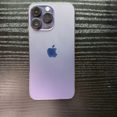 Apple iPhone 14 Pro med 128 GB lagringsplass i fargen lilla.