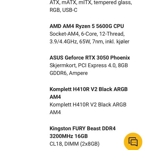 RAM: 32GB Kingston FURY Beast RGB DDR4 3200 MHz. (16gb i bildet, men kjøpte to sticks til)