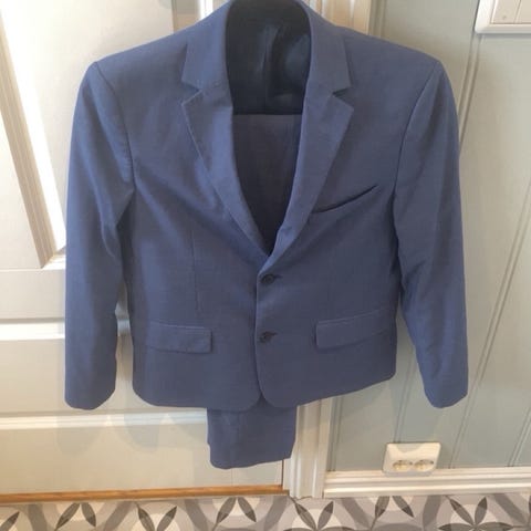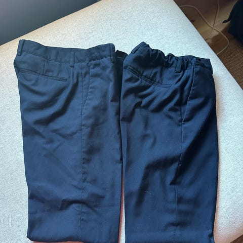 Selger en pen svart dressjakke og dressbukse til gutt. Den er kun brukt 1-2 ganger. Buksen er 158 og jakken 164 men de er brukt sammen.