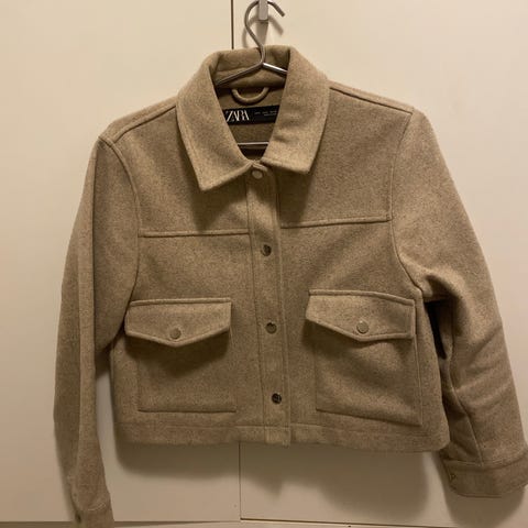 Pent bruk ulljakke med brystlommer fra Zara. Perfekt for vår og høst🍁 27% ull. Fra skuldrene og ned er den ca 56cm.