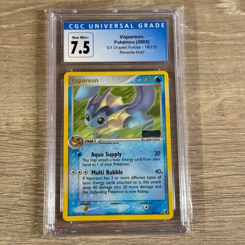 Pokémon Hitmonchan EX samlekort fra EX Ruby & Sapphire-serien, gradert av CGC med karakter 7.5. Kortet er innkapslet i en hard plastcase fra CGC.