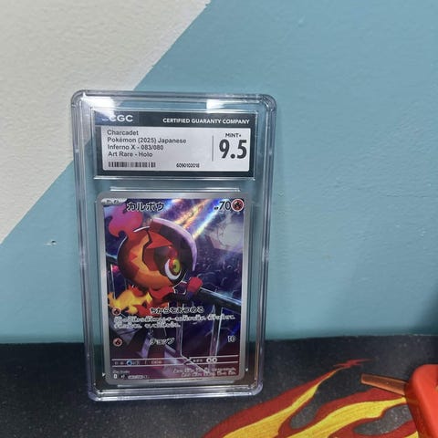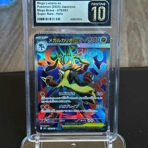 Det første kortet er en Mega Latios ex, profesjonelt gradert til CGC Gem Mint 10 (høyest mulig grad). Kortet er sertifisert med serienummer 6105559114 og er trygt forseglet i sin originale CGC-holder. Et perfekt tillegg for samlere som ønsker kort i topp stand.