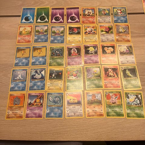 Selger en samling på 68 vintage Pokémon kort fra egen barndom (1999–2001).