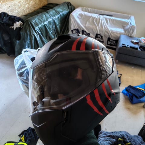 Poden droppa å ta lappen til lett MC og selger derfor mye nytt utstyr og litt brukt.