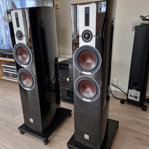 Meget fine Dali Oberon 9 høyttalere. De er litt over 2år gamle. Jeg er andre eier på disse og ifølge forrige eier ble disse kjøpt januar 2024.Har brukt litt forskjellig av forsterkere på de men siste tiden har de vært koblet på marantz Cinema 30. De er pakket i original emballasje pga flytting. Deksel er aldri brukt og ligger i plast. Ønsker at disse hentes da jeg syntes det er risiko å sende disse. Er mye rundt pga reisejobb så kan eventuelt møtes innen rimelig avstand.