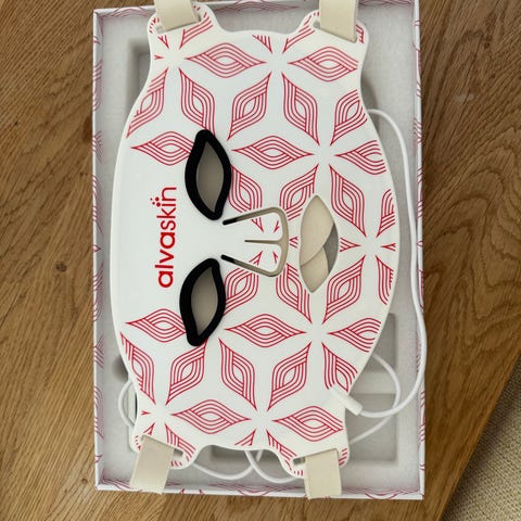 Alvaskin Aurora LED-maske, selges da den ikke kan kombineres med min nåværende hudrutine. Kjøpt ny desember -25. Maks brukt 15 ganger, fremstår som ny. Vasket og rengjort. Nypris 3599kr med kampanje