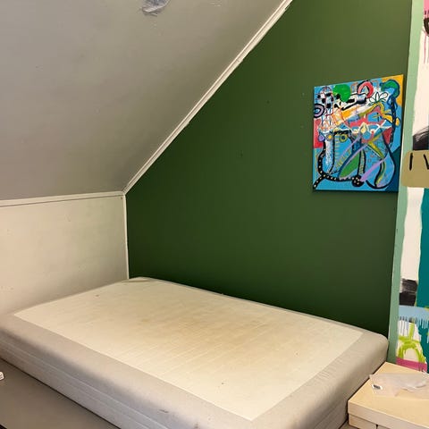 I tillegg er det bare å kjøpe et laken til å ta rundt slitasjemerkene, da virker senga så god som ny