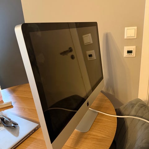 Apple iMac stasjonær PC i sølvfarge. Står late 2009 men alt fungerer perfekt her. 2,66 ghz prosessor i5 Intel core 4gb Alt-i-ett-løsning der skjerm og datamaskin er integrert i samme enhet. Skjermen er på ca. 27 tommer og står på en fast fot i aluminium. Tastatur og mus i hvit/sølv følger med på bildene. Egner seg til generell bruk som kontorarbeid, nettlesing og medieavspilling. Maskinen har flere porter på baksiden for tilkobling av tilbehør og nettverk. Detaljer om nøyaktig maskinvarekonfigurasjon (prosessor, minne, lagring osv.) er ikke oppgitt i annonsen.