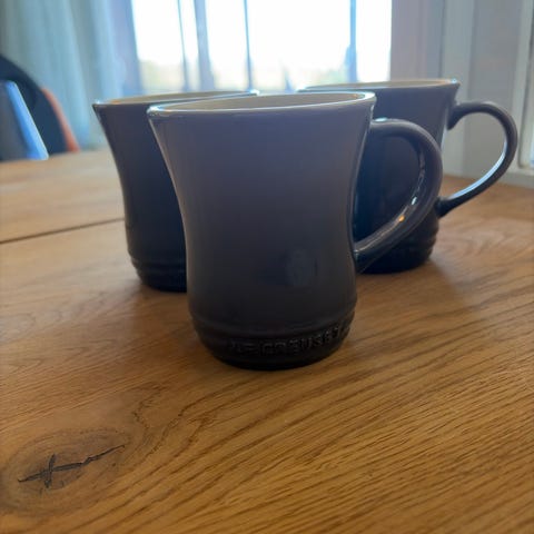 Le Creuset: espressokrus steingods, lilla, turkis og lyseblå