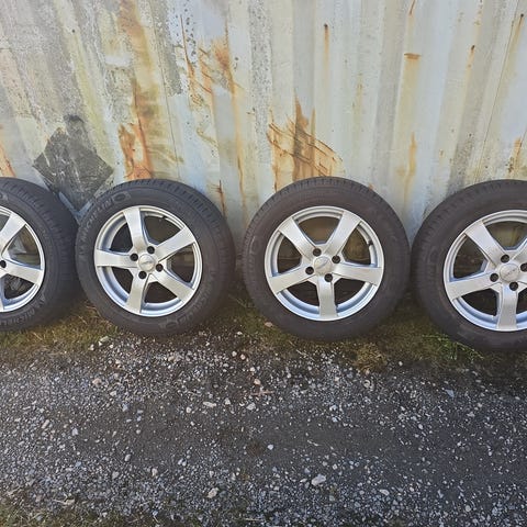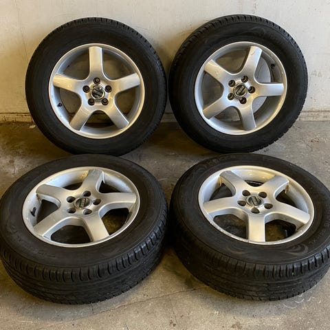 Dekkene er montert på 15" felger som virker å være i relativt god stand. Noe merker etter bruk fra forrige eier av bilen, har selv bare brukt dette settet 2 uker i fjor. Med litt stell bør felgene være i tipp topp stand visuelt.
