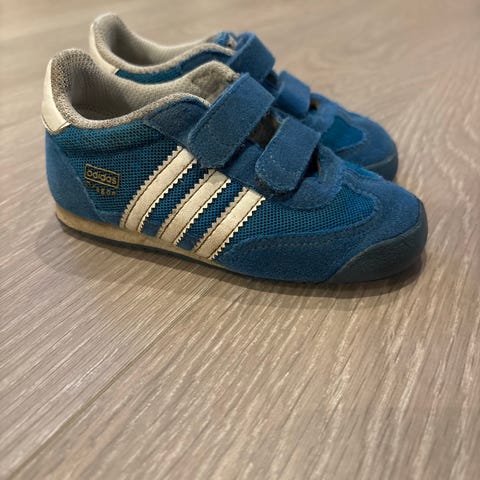 Adidas Dragon joggesko for barn i størrelse 27. Skoene har borrelås for enkel av- og påkledning.