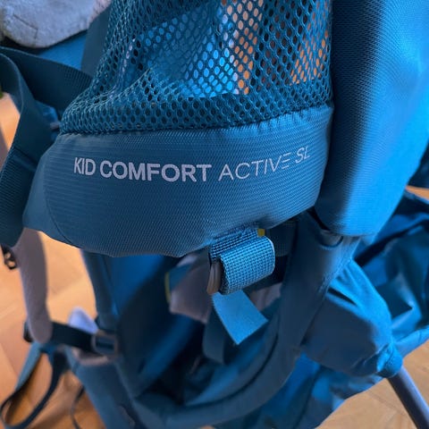 Selger en svært solid og komfortabel bæremeis: Deuter Kid Comfort 3. Perfekt til turer i skog og fjell med små barn.