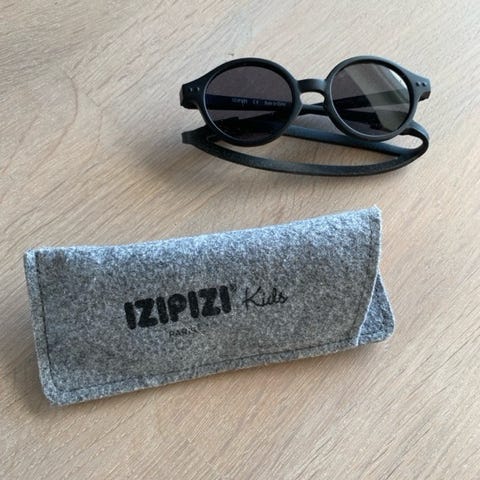 Pent brukte solbriller fra Izipizi til baby (0-9 mnd) i fargen svart. Kommer med stropp og etui.