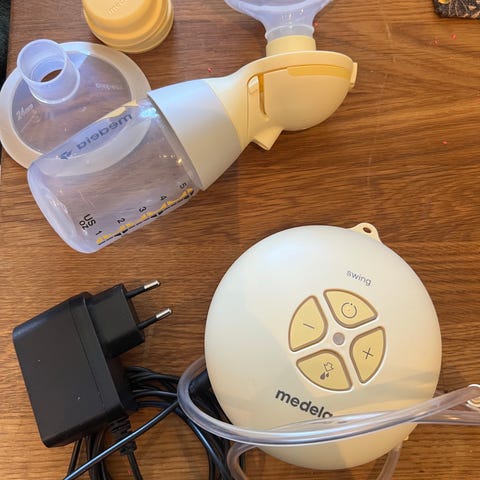 Pent brukt Medela Swing Flex brystpumpe. Elektrisk. Flaskeholder, to flasker med kork medfølger.