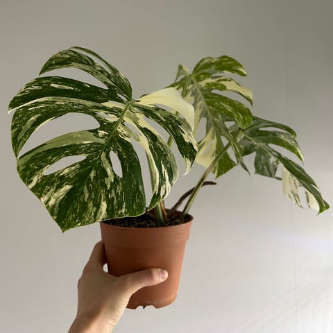 2 stk Monstera variegata med flotte røtter plantet i coco coir substrat 23/3. Innerpotte medfølger.