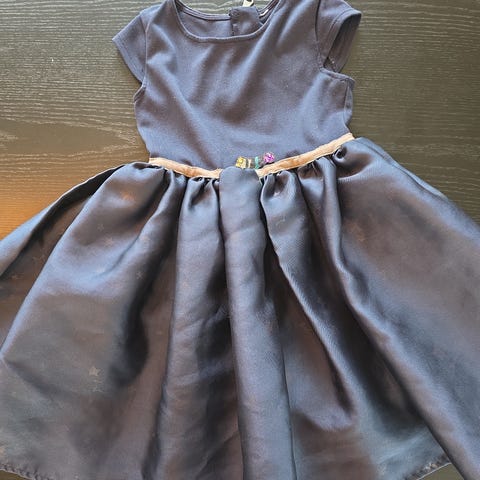 Flott kjole fra HM med nydelig mønster og farge! Veldig pent brukt. Str 110/116, normal i størrelsen.