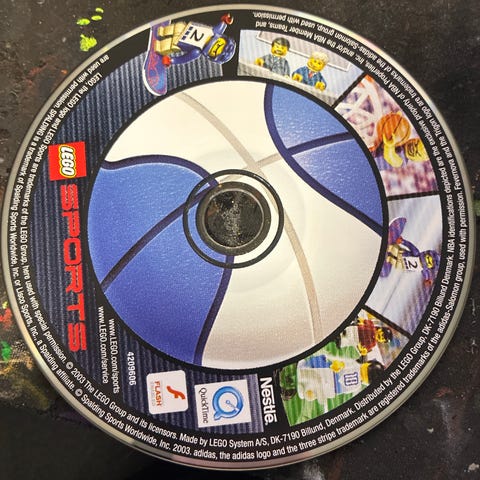 Lego Sports PC-spill. To spillplater med sportsbaserte minispill og aktiviteter med Lego-figurer. Spillene leveres på CD-ROM for PC. Egnet for brukere som ønsker Lego-tematiserte sportsspill på datamaskin. Ytterligere tekniske krav og språkversjoner fremgår av platene. Retro spill
