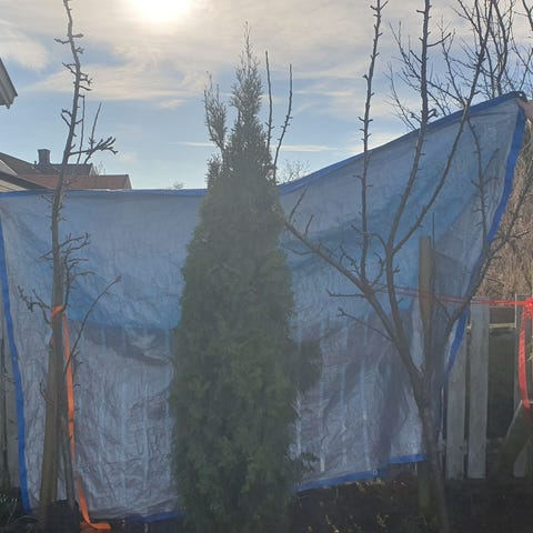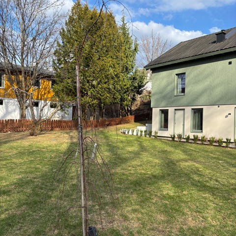 To epletrær til salgs. Du kan komme og grave dem opp. Eplene er store og smakfulle, veldig saftige.Prisen er for ett tre. Det er to av dem.