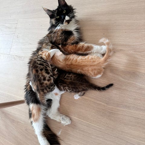 Marvin er utrolig sosial, og er rundt oss hele tiden. Han er veldig glad i lek, og kos. Han er veldig barnevennlig, pg veldig glad i barna våre. Vi har en på 1år og en på 3 år. Han er 1åringens beste venn, og er en utrolig tålmodig katt! Så han kan passe godt inn i barnefamilie.