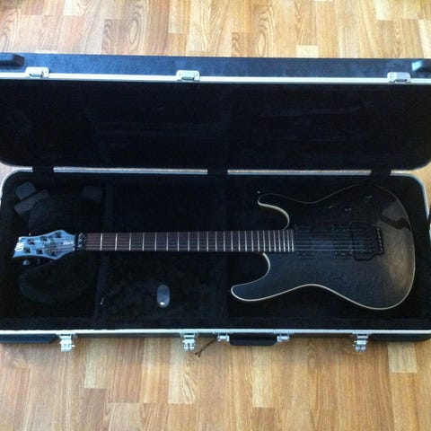 Selger en nydelig Mayones regius 7 strenger i fargen trans graphite burst. Seymour duncan nazgul og sentient pickups med coil split.