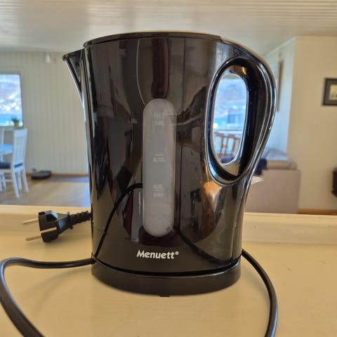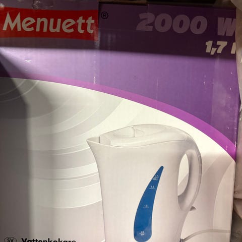 Menuett vannkoker 1,7 l glass. Vannkoker med kapasitet på 1,7 liter og beholder i glass med detaljer i plast og metall. Egnet til koking av vann til te, kaffe og annen drikke, samt til matlaging hvor kokt vann er nødvendig.