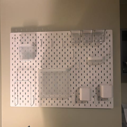 IKEA oppbevaringstavle med tilbehør i hvit farge.