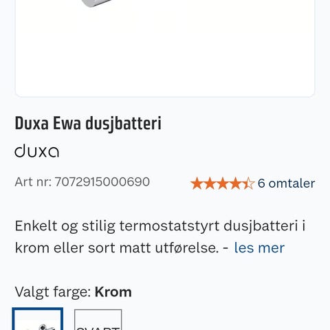 Oras Oramix dusjbatteri i kromutførelse. Termostatstyrt blandebatteri for dusj med to betjeningsratt, ett for temperatur og ett for vannmengde. Veggmontert modell med standard tilkobling for dusjslange under. Passer til de fleste dusjløsninger på bad.