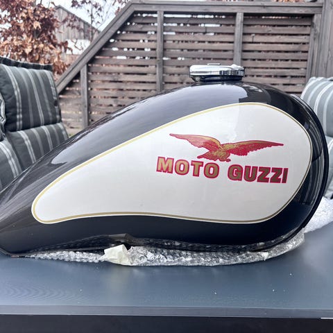 Tank og sidedeksler til Honda CB500Four i god stand. Sgs rustfri tank og hele sidedeksler. Ser ut som tanken er trykket bittelitt ned på venstre side av tanklokk. Vanskelig å få med på bilde. «F» på høyre sidedeksel er hjemmelaget da den originale falt av.