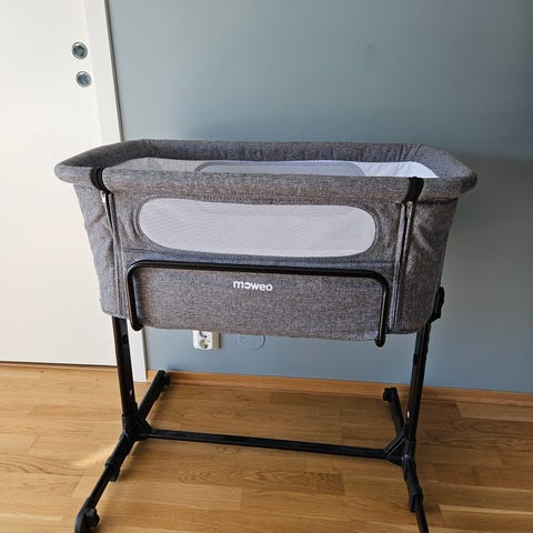 Lite brukt Alex bedside crib fra Moweo. Ingen brukesmerker eller slitasje.