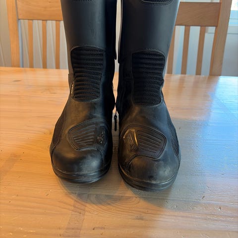 MC støvler/kjøresko. Støvlene har høyt skaft med polstrede partier foran og bak, samt forsterkninger over vrist og ved ankel. De har glidelås på siden for enkel av- og påtaking. Innsiden har tekstilfôr med pustende meshstruktur for bedre komfort. Egnet som kjørestøvler til motorsykkel med fokus på beskyttelse av fot og ankel. Normal i str.