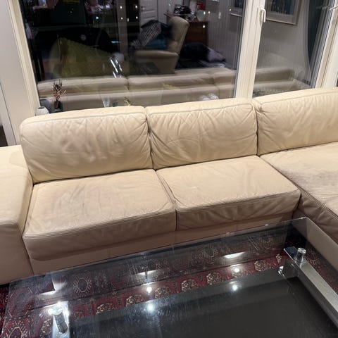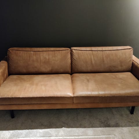 Pent brukt sofa i skinn selges høystbydende over 4000 kr. Nypris 18000,-