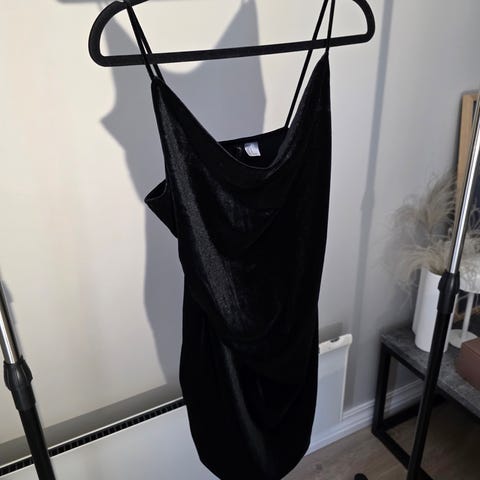 100% SILKE underkjole / nattkjole. SVART. Avtakbare stropper.