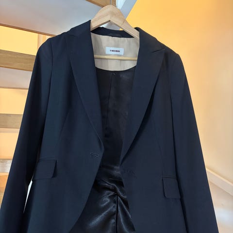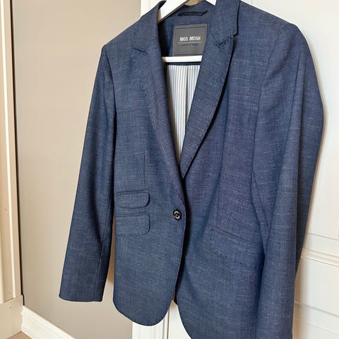 Mos Mosh blazer for dame i størrelse 36. Blazeren har flerfarget rutemønster i jordtoner, med klassisk krage og knappelukking foran. Modellen har lange ermer. Innsiden er helfôret for økt komfort. Egner seg til bruk både til hverdags og mer formelle anledninger.