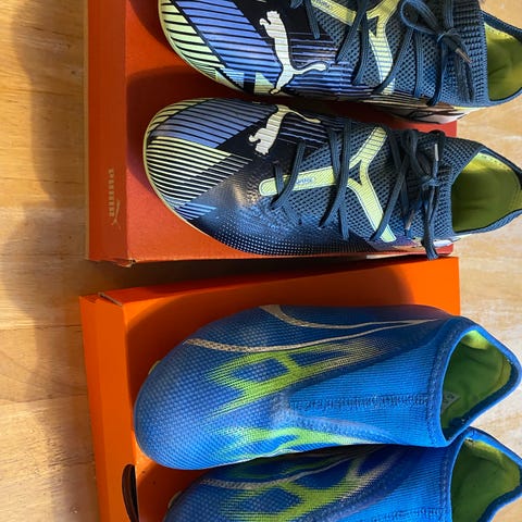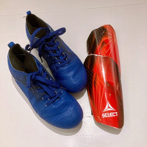 Fotball sko (46 str) - leggskinn str L - kjegler 6 st alt sammen 300 kr