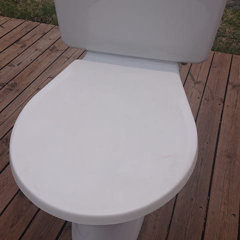 Toalett med integrert sisterne i hvit farge. Gulvstående modell med avløp i gulv og tilkobling for vann bak på sisternen. Egnet for montering på bad eller toalettrom der det er tilrettelagt for standard vann- og avløpstilkobling. Sete følger med. Må hentes