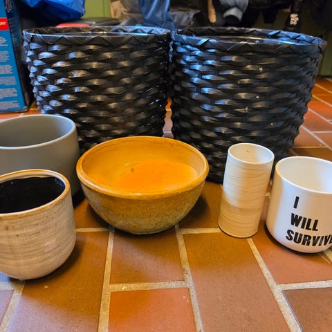 Gis bort som den står (as is) med jord og plante inkludert.